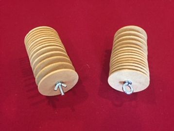 THE HESTER DENDY 9 PLATE ROUND CONFIGURATION STARTS WITH 9 X 3" 1/8TH" HARDBOARD DISKS, 3 SINGLE SPACERS, 3 DOUBLE, 1 TRIPLE SPACER, 2SS WASHERS AND A 4 ' ZINC COATED EYEBOLT AND WINGNUT
