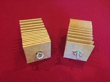 THE HESTER DENDY 14 PLATE SQUARE CONFIGURATION STARTS WITH 14 3" SQUARE 1/8TH" HARDBOARD PLATES, 8 SINGLE SPACERS, 1 DOUBLE, 3 TRIPLE AND 1 QUAD SPACER, 2SS WASHERS AND A 7 ' ZINC COATED EYEBOLT AND WINGNUT